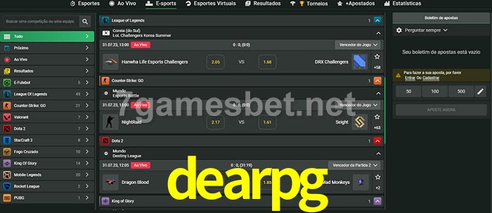 O dearpg oferece uma grande seleção de opções de apostas em e-sports com probabilidades competitivas